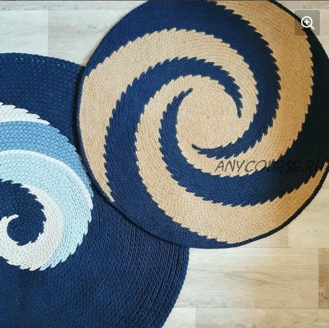 МК по вязанию делится на 4 этапа. 1. Урок по вязанию узора Верблюд 2. Вязание центра одним цветом 3. Вязание со сменой цветов 4. Последний ряд и обвязывание края. Используя этот МК вы можете связать ковер или салфетку под горячее с рисунком Вихрь, любой расцветки, на ваше усмотрении. Расход Салфетка диаметром 30см (25 рядов, х/б шнур 2мм) - 150м Ковер диаметром 80см (38 рядов, х/б шнур 4мм) - 450м Ковер диаметром 80см (32 ряда, х/б шнур 5мм) - 550м В МК дано подробное описание 38 рядов. Так же дан принцип распределения прибавок, если нужен больший размер. МК в формате PDF с ссылками на видео основных моментов.
