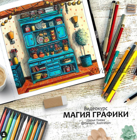 ? ТА-ДАААМ!!! Совершенно новый курс «Магия Графики», посвященный рисованию в технике ручка/линер плюс цветные карандаши. Очень интересная и красивая техника, в которой я в последнее время рисую очень часто. Она идеальна для скетчбуков, для рисования вне дома, но так же она отлично подходит и для создания больших полноценных красивых иллюстраций.