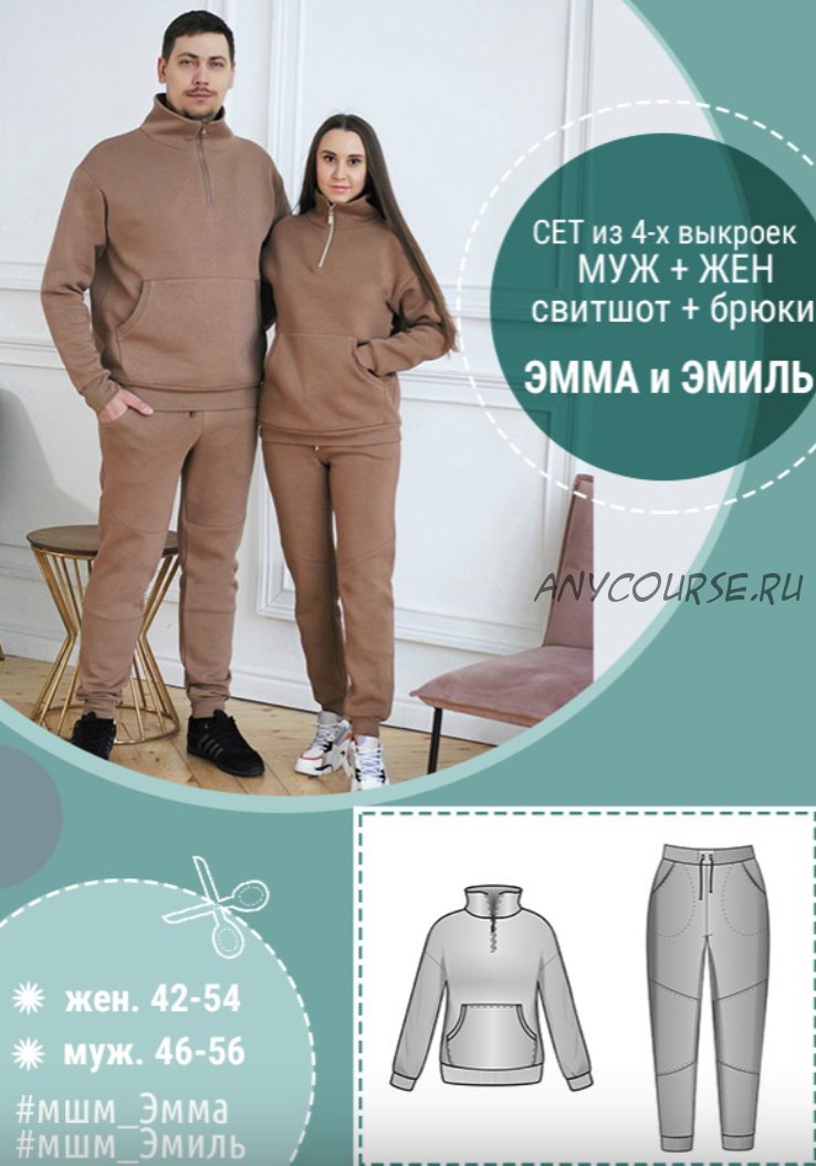 К выкройкам прилагаются инструкции по пошиву. Комплект сетов «Эмиль» и «Эмма» - ваш самый тёплый и уютный family look, который вы будете носить с удовольствием и комфортом!