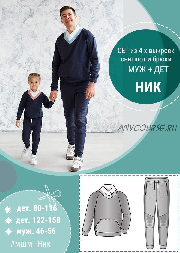 [Мама шила малышу] Сет из 4 выкроек свитшот и брюки «Ник». Размеры 80-158