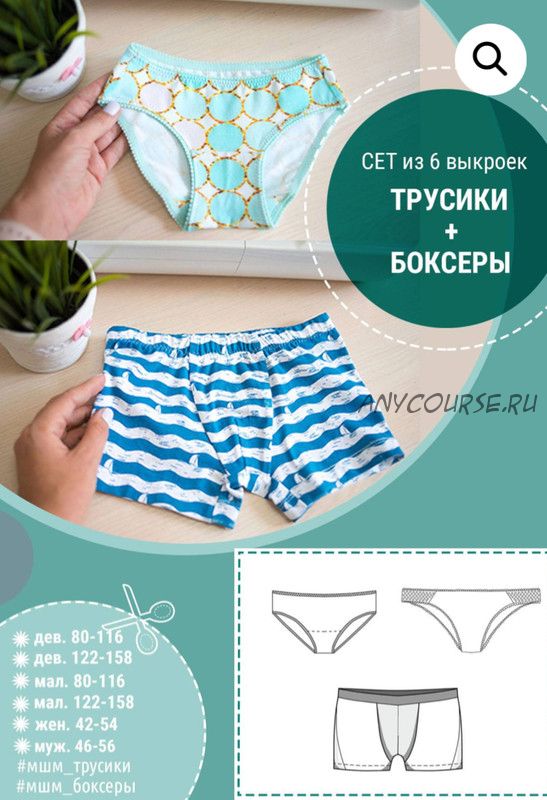 [Мама шила малышу] Сет из 6 выкроек «Нижнее белье» для всей семьи (Алина Шаймуратова)