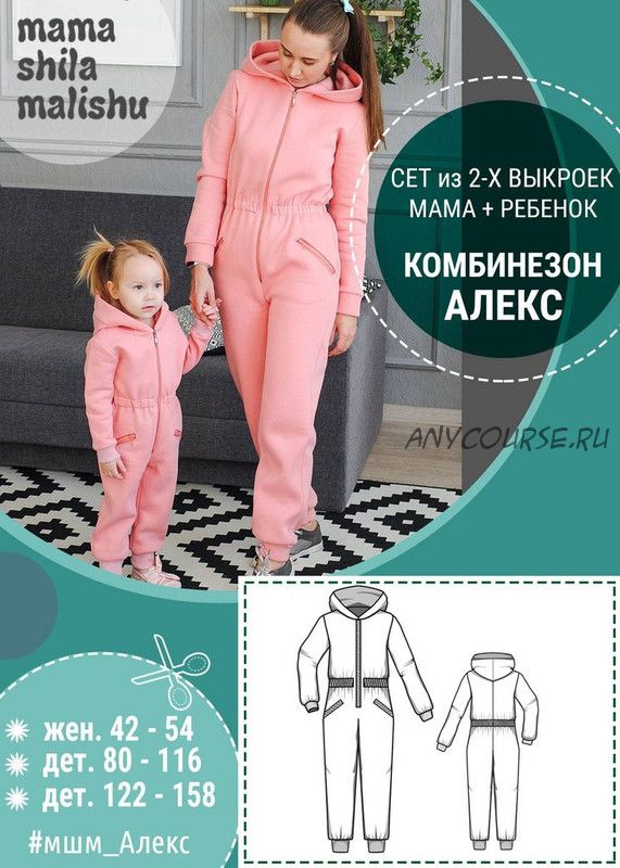 Женская выкройка - размеры с 42 по 54, на рост 170 см (+- 6 см). Детские выкройки - размеры с 80 по 158.