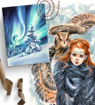 И как может маркер градиентом передать свечение ночного северного неба да минимальной палитрой. И на десерт образ заснеженной девушки с шикарной совой.