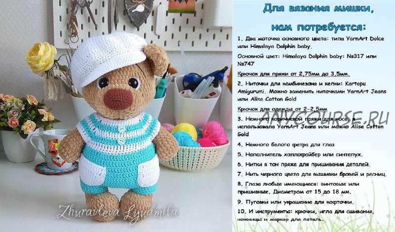 Мастер-класс состоит из 26 страниц с подробным и пошаговым текстовым описанием в формате PDF, так же содержит более 30 фотографий процесса вязания. Уровень сложности - средний Рост игрушки - 25см (зависит от номера крючка и плотности вязания). Данный МК не содержит уроков по вязанию. Для вязания данного МК необходимы основные навыки вязания крючком.