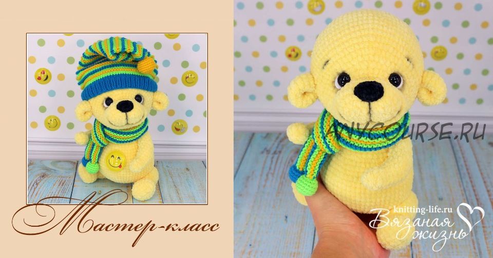 • вяжем медвежонка крючком, колпачок и шарфик спицами