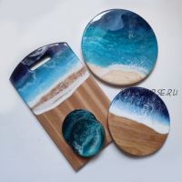 • На мастер-классе мы нарисуем море на разделочной доске и круглом подносе