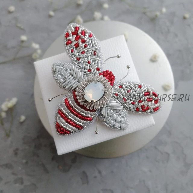- Вы научитесь оформлять контур и изнанку броши с помощью жесткой канители.