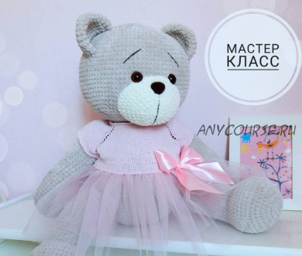 Игрушка ростом 60см. Данный МК не является обучающим материалом; для вязания игрушки необходимы основные приемы вязания.МК содержит фотографии и подробное описание на 22 страницах в формате PDF В МК входит описание мишки 'Мишель ' и платья