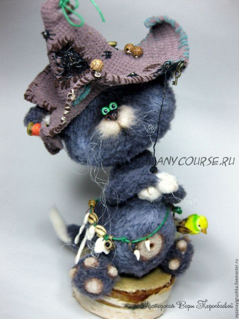 Игрушка вяжется на проволочном каркасе, за счет чего может принимать любые положения. Голова на двойном шплинте. Рост игрушки 20см. Уровень сложности вязания - высокий. В мк так же входит описание изготовления шляпы.