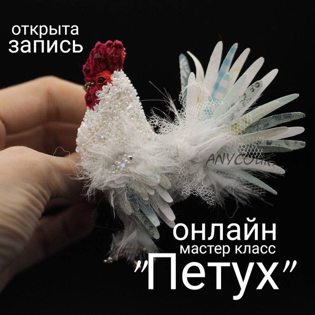 Эта эффектная брошь сочетает в себе много техник и работу с различными материалами. Знания будут полезны как начинающим мастерам, так и уже имеющим опыт в вышивке. Ну и потом Петуха давно просили).