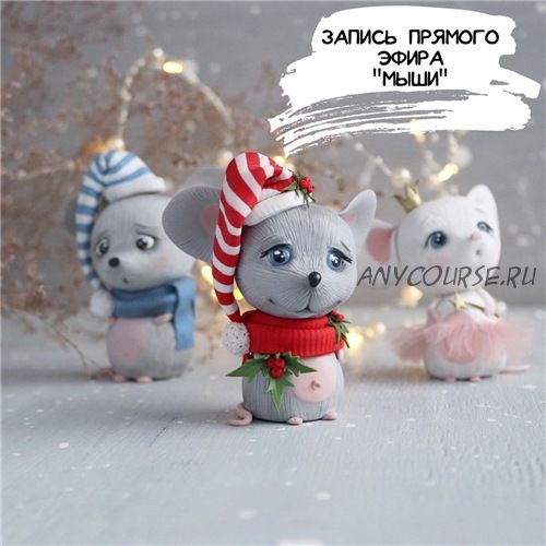 Запись прямого эфира по объемным фигуркам мышек. Показываю процесс полностью, два варианта лепки глаз, два варианта мордочки. Два варианта одежды - юбочка, корона, палочка, колпачок, шарф, веточки остролиста.