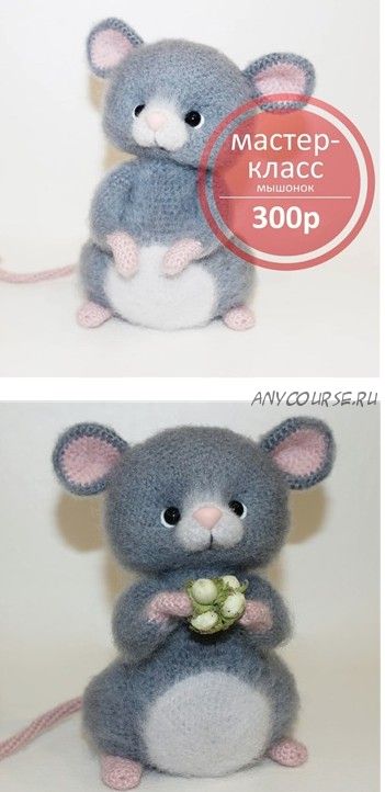 вам понадобится: -пряжа Ализе Реал 40 цвет – 87 (серый) - 1 моток, 21 (пепельный), 185 (розовый) -крючок 3 -толстая игла -черные бусины 8мм – 2шт -проволока для каркаса 20 см
