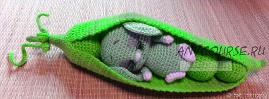 Мышонок в горошке ,связан крючком.Из стручка вынимаются горошины и сама игрушка. Может быть игровой или сувенирным подарком .Символ наступающего года. Без каркаса.Мастер класс не содержит уроков по вязанию .Уровень сложности - средний.