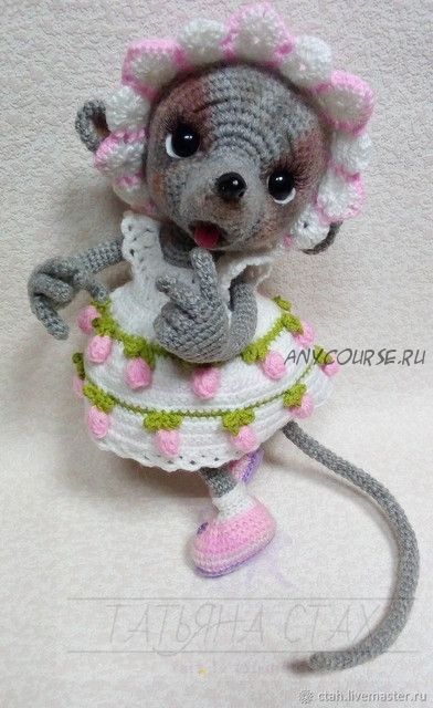 Очень хозяйственная Мышка , Связана на каркасе, пальчики армированы. Из заявленных материалов рост игрушки 26 см. Одежда вся снимается. Мастер класс очень подробный - 97 страниц - 90 фотографий. Уровень сложности - средний.