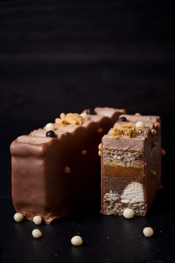 фундучный бисквит, абрикосовое конфи , ванильная немелака, крем с бергамотом