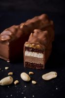 Бисквит шоколадный, креме шоколадное, мусс на основе нуги с арахисом, мягкая Карамель без желатина, жареный арахис, глазурь.