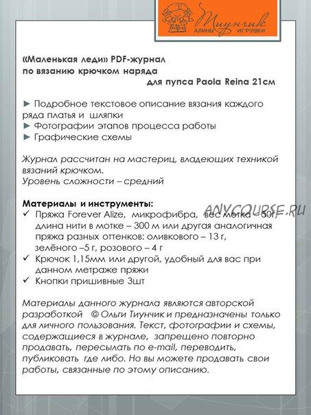 Журнал рассчитан на мастериц, владеющих техникой вязаний крючком.