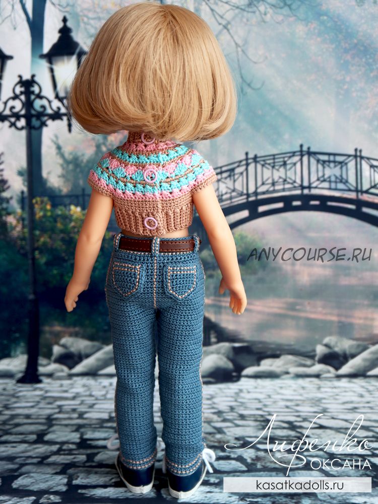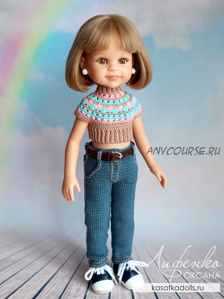 ? Описание по вязанию джинсового костюма для кукол Паола Рейна!