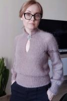 ? Изделие вяжется регланом сверху, что позволяет легко регулировать длину. Росток вяжется с помощью укороченных рядов, на спине и полочках выполняется углубление горловины для лучшей посадки. Ажурный воротник-стойка и ажурные манжеты придают особый шарм изделию и образу в целом.
