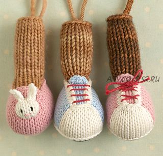 Предназначены для использования в качестве дополнения к любому из моих описаний вязаных игрушек обычного размера (9 дюймов) - он не подходит для описаний маленьких или миниатюрных животных. Обратите внимание, что варианты обуви вяжутся в игрушку и не снимаются. В комплект входят тапочки и кроссовки в виде кроликов, которые можно заменить на ступни, используемые в любом из рисунков животных для мальчиков или девочек. Есть два варианта изготовления кроссовок: более простой и более сложный.