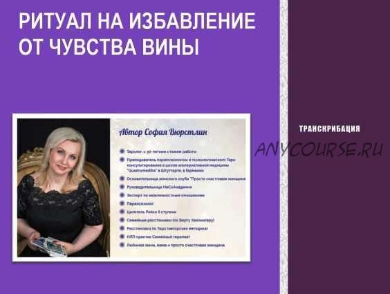подумала, что это не совсем честно по отношению к тем, кто ездит каждый год. И поэтому… поэтому вот этот ритуал для снятия вины он