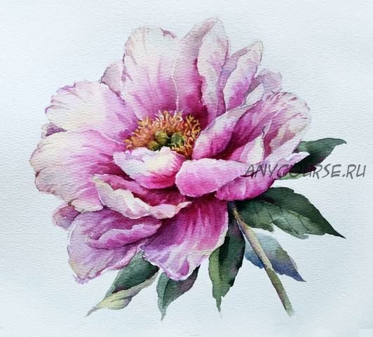 Нежный пион акварелью (Елена Вавилина)