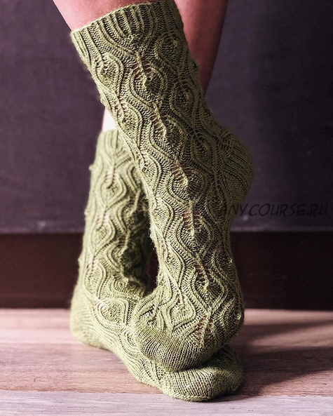 При данной плотности вязания носки получаются на ногу объёмом в щиколотке 22-24 см, но размер всегда можно отрегулировать с помощью плотности вязания, например, использовать спицы большего или меньшего размеров.