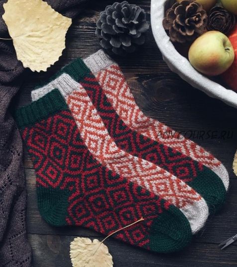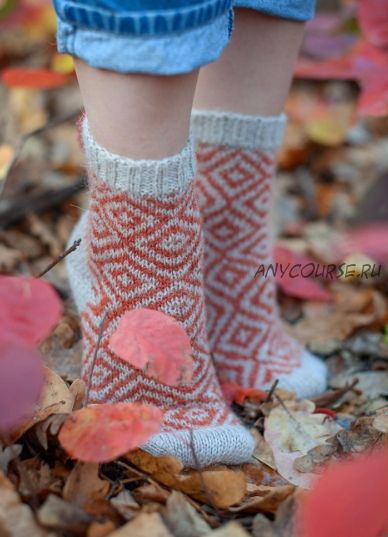 Носки с двухцветным жаккардовым узором и пяткой бумеранг.