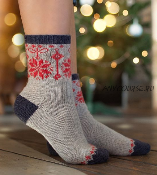 ??Носки вяжутся от мыска, пятка бумеранг выделена контрастным цветом, клин подъема имеется. Жаккардовый узор на паголенке.