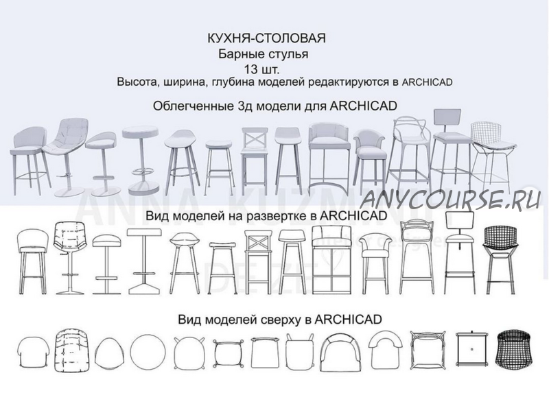 Облегченные Зd модели для ArchiCAD. Блок Кухня-столовая (anna.kuzminih)