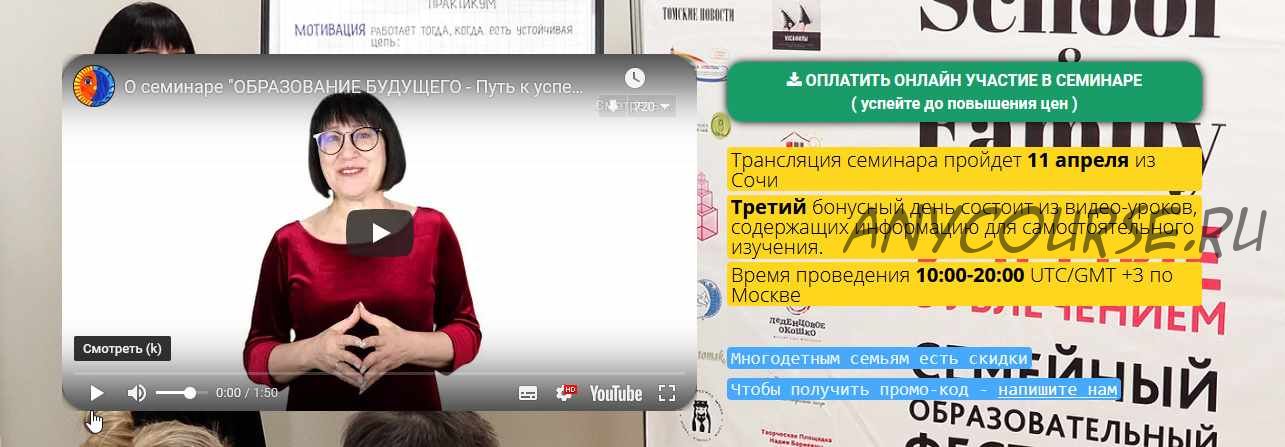 6. В год проводит около 20-ти семинаров и офлайн-практикумов по городам России, Европы и стран бывшего Союза.