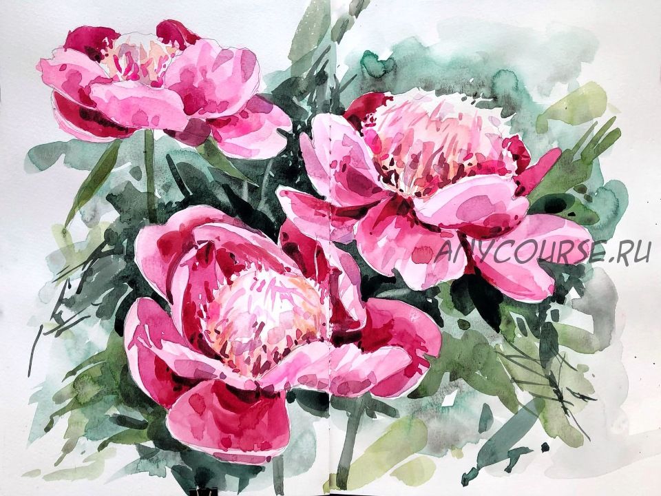 Учимся рисовать пионы в разных ракурсах. Ловим свет на лепестках и добавляем живые тени.