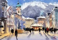 Пишем людей на катке, завершая образ городской площади в Новогодние праздники