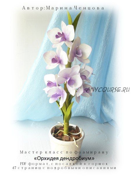 Мастер класс по фоамирану орхидея 'Дендробиум'. Формат МК - ПДФ, 47 страниц по созданию и сборке орхидеи. Посадка в горшок.