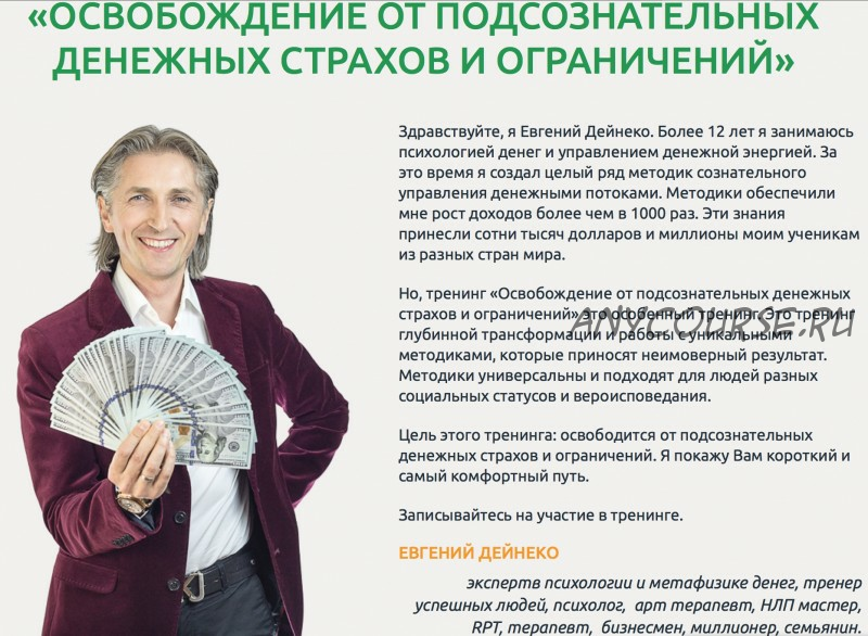 - Освобождение от подсознательных денежных страхов и ограничений (Евгений Дейнеко)