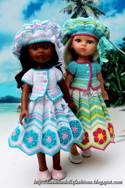 Вы свяжете красивый летний сарафан, берет и жакет для своей любимой куклы (или на заказ).