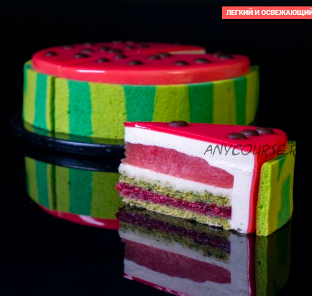 [Pastry-School] Муссовый торт с зеркальной глазурью Арбуз (Елена Крохмаль)