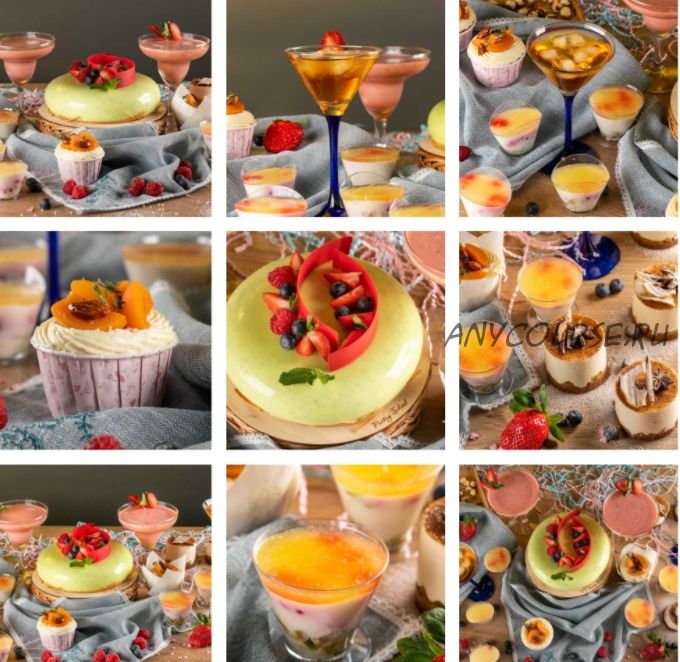 Десерты:Основными вкусами для этого сладкого стола стали сочные ягоды и фрукты, дерзкие цитрусовые нотки лайма, свежесть мяты, нежный сливочный вкус и пьянящие ароматы сухого мартини.