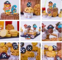 - Пряничные украшения: топпер “Пират”, “Цифра именинника”, “Пиратские шапки для кейкпопсов”, “Монеты для капкейков”, “Пиратские метки для капкейков”)
