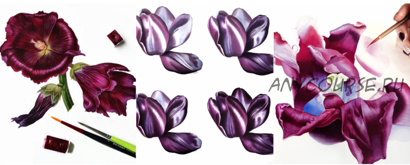 Глубокие оттенки и глянцевые переливы темных лепестков завораживают. Два основных приема в многослойной акварели позволят добиваться потрясающих эффектов, а черный тюльпан - самая подходящая натура, чтобы их изучить.