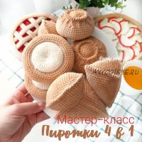 Вы получите: Мастер-класс по вязанию крючком пирожков включает в себя описание 4 вида пирожков: классический пирожок, треугольный пирожок, круглый пирожок, ватрушка. При использовании рекомендуемой пряжи пирожки получаются в натуральную величину. Мастер-класс состоит из 15 страниц и содержит 37 пошаговых фотографий процесса. Уровень сложности: средний.