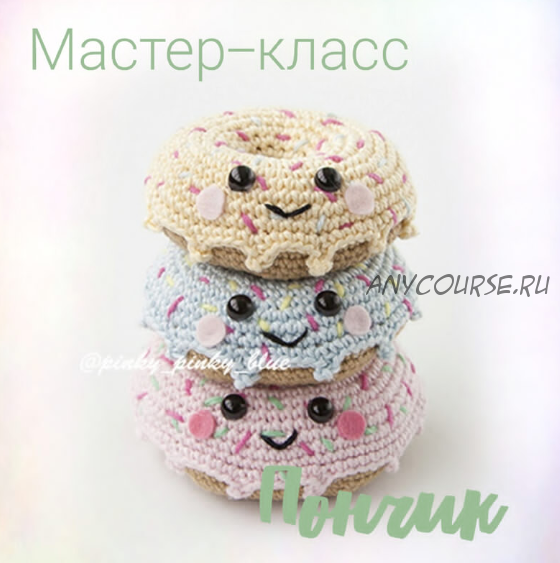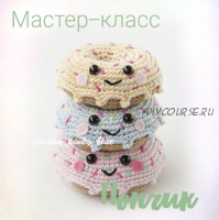 Мастер-класс по вязанию крючком очаровательных пончиков. Это базовый мастер-класс, на его основе можно связать пончики с любым дизайном. Главной особенностью этого мастер-класса является вязание пончиков идеальной круглой формы, а не 6-угольной, как это обычно бывает. Пончики вяжутся полностью одной деталью, вам не придется отдельно вывязывать глазурь. Вязаные крючком пончики станут незаменимы в играх в кондитерскую, чаепитие, магазин, кафе. Мастер-класс в формате pdf состоит из 14 страниц и содержит 21 пошаговую фотографию процесса. Уровень сложности: средний.