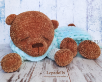 Пижамница из плюшевой пряжи, тело игрушки в виде мешочка, снизу затягивается кулиской с фиксатором.