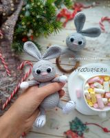 В описание входит схема самого зайки, погремушки и правок, которые следует внести при вязании его из плюшки.
