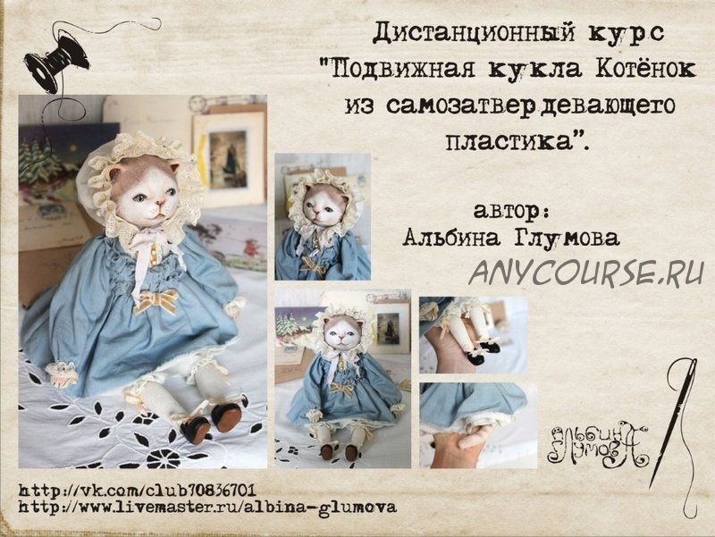 ? Альбина Глумова: Я долго думала над курсом по лепке куклы для всех, кто очень хочет познакомиться с лепкой из самозатвердевающих пластиков, но не хочет разочароваться при первом же результате. И нашла самого выигрышного для знакомства с лепкой персонажа - котёнка! А также продумала курс так, чтобы при минимально возможных усилиях, получить очень эффектный, красивый, аккуратный и качественный результат! Так, чтобы он пригодился и для тех, кто уже имеет опыт в лепке, но хочет попробовать разные техники.