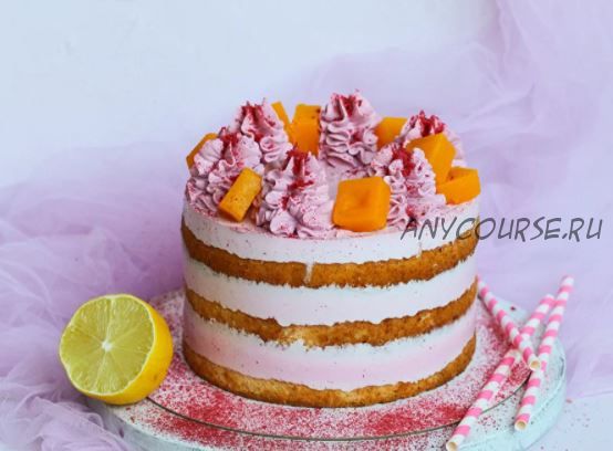 Сочные миндально-кокосовые коржи, малиновая начинка, лимонный ганаш без сахара, малиновый низкокалорийный крем