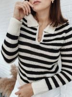 Полосатый поло я вязала тоже из бобиной пряжи из этого магазина это меринос с шелком. Черная пряжа Артикул -17225, белая арт.17146 с добавлением нити арт.18224. На 42 размер у меня ушло всего 240 гр.