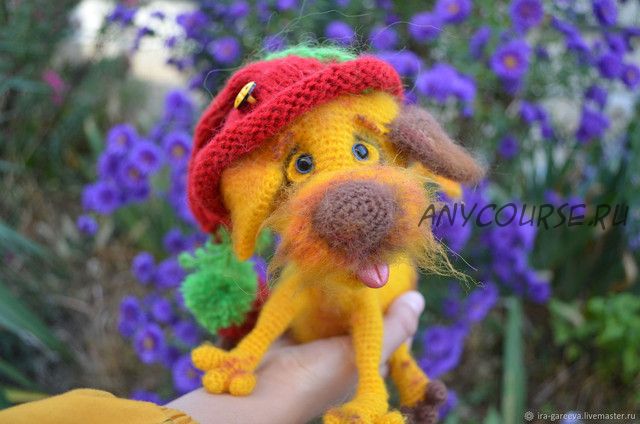 ? Игрушка связана крючком.. За счет проволочного каркаса может принимать любые положения.