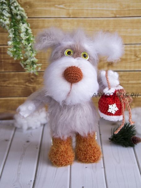 Мастер класс состоит из 27 страниц в формате пдф, более 80 фотографий процесса изготовления игрушки, описание вязания мешочка, валенок и шарфика, МК по изготовлению глазок с использованием полимерной глины.