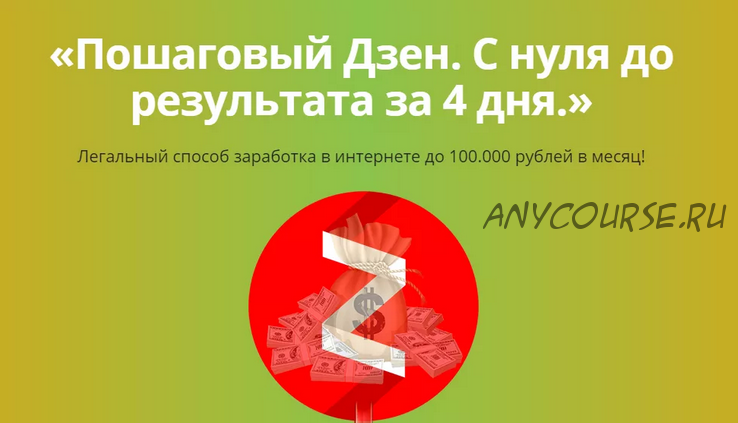 Курс «Пошаговый Дзен» отлично подойдет для новичков, так как состоит из подробных видеоуроков.Курс не требует специальных навыков. Он легок в освоении. Можно работать из любой части мира! В том числе и из тех стран, где имеются ограничения.Не нужно ничего продавать. Не нужно иметь своего сайта. Не нужно иметь каких-либо баз!